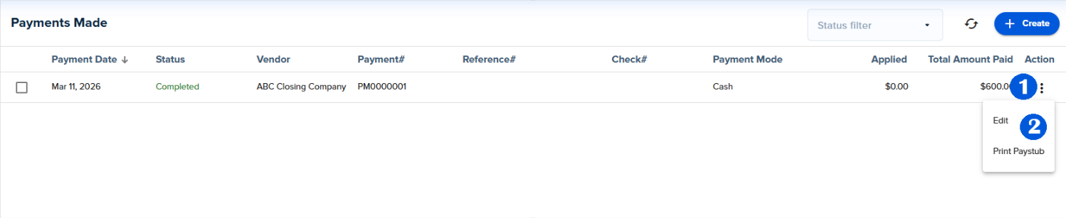 - Amount: The amount you want to pay the vendor, it can be applied to multiple bills