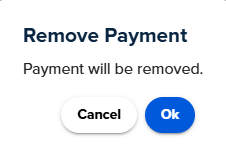 6. A Remove Payment pop-up will appear > Select Ok