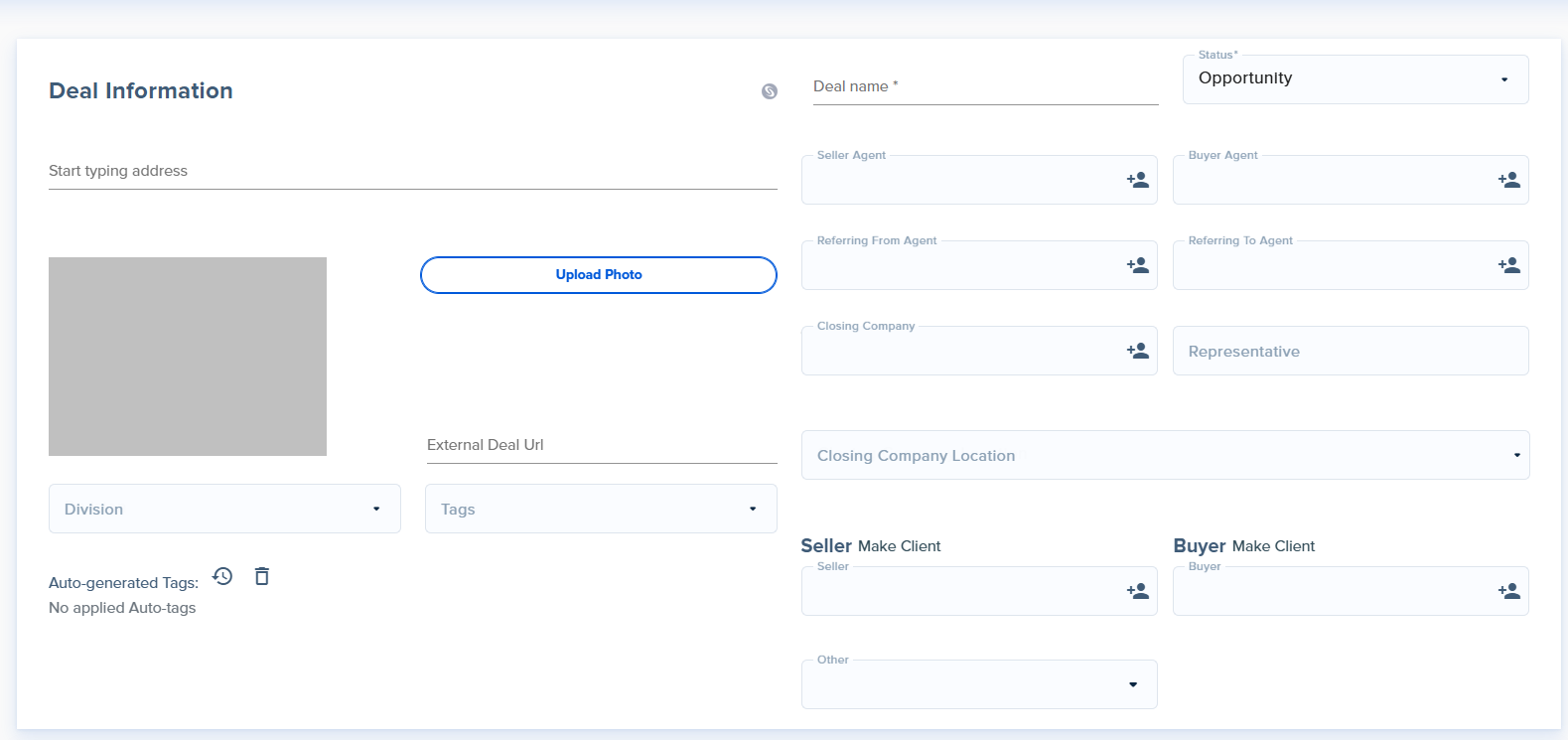 - Primary Agent: At least one agent needs to be associated with the deal.