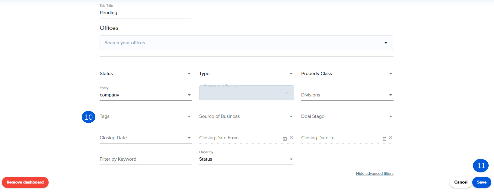 8. You can now update your Deal Board to filter by Status, Type or Property Class