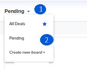 2. This will open a dropdown with all the boards you have created. Click on the deal board you would like to view.