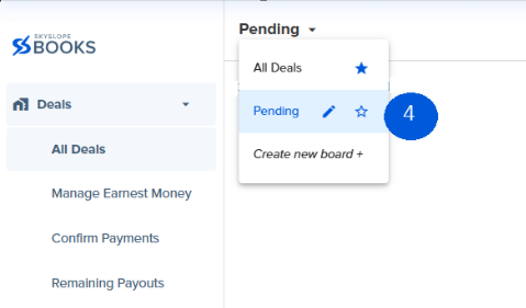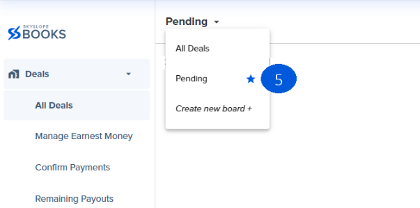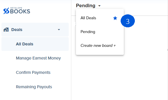 3. The board name with a star next to it is your default deal board, meaning SkySlope Books will show you this deal board every time you go to the Deals page.